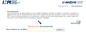 Para peticionar no INPI o cumprimento de uma exigência de mérito, é necessário acessar o sistema e-Marcas, clique em gerar a GRU,